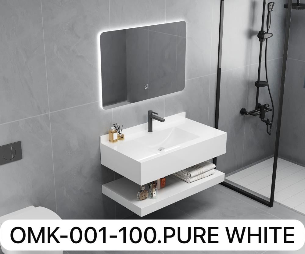 مغسلة بورسلان 100سم قطعتين حوض ابيض سادة (OMK-001-100 SW )