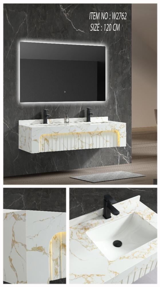 وصف المنتج: مغسلة رخام بحوضين مع إضاءة LED